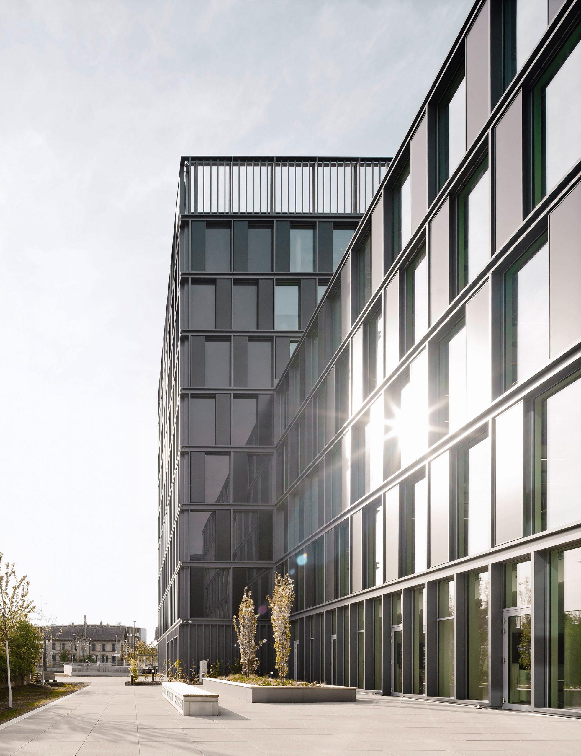Nachhaltigkeit ist ein zentraler Leitgedanke des Projekts. Neben dem Einsatz ökologisch unbedenklicher und dauerhafter Materialien wird das Gebäude als nahezu Null-Energie-Haus betrieben. Ein extensiv begrüntes Dach, die Verwendung recycelter Baustoffe (z. B. Recyclingbeton, Cradle-to-Cradle zertifizierte Ausbau-Materialien) sowie gebäudeintegrierte Photovoltaikelemente erfüllen in hohem Maße ESG-Kriterien. Das Gebäude befindet sich aktuell im Freigabe-Prozess der DGNB- Zertifizierung und wird eine DGNB-Platinum erreichen.