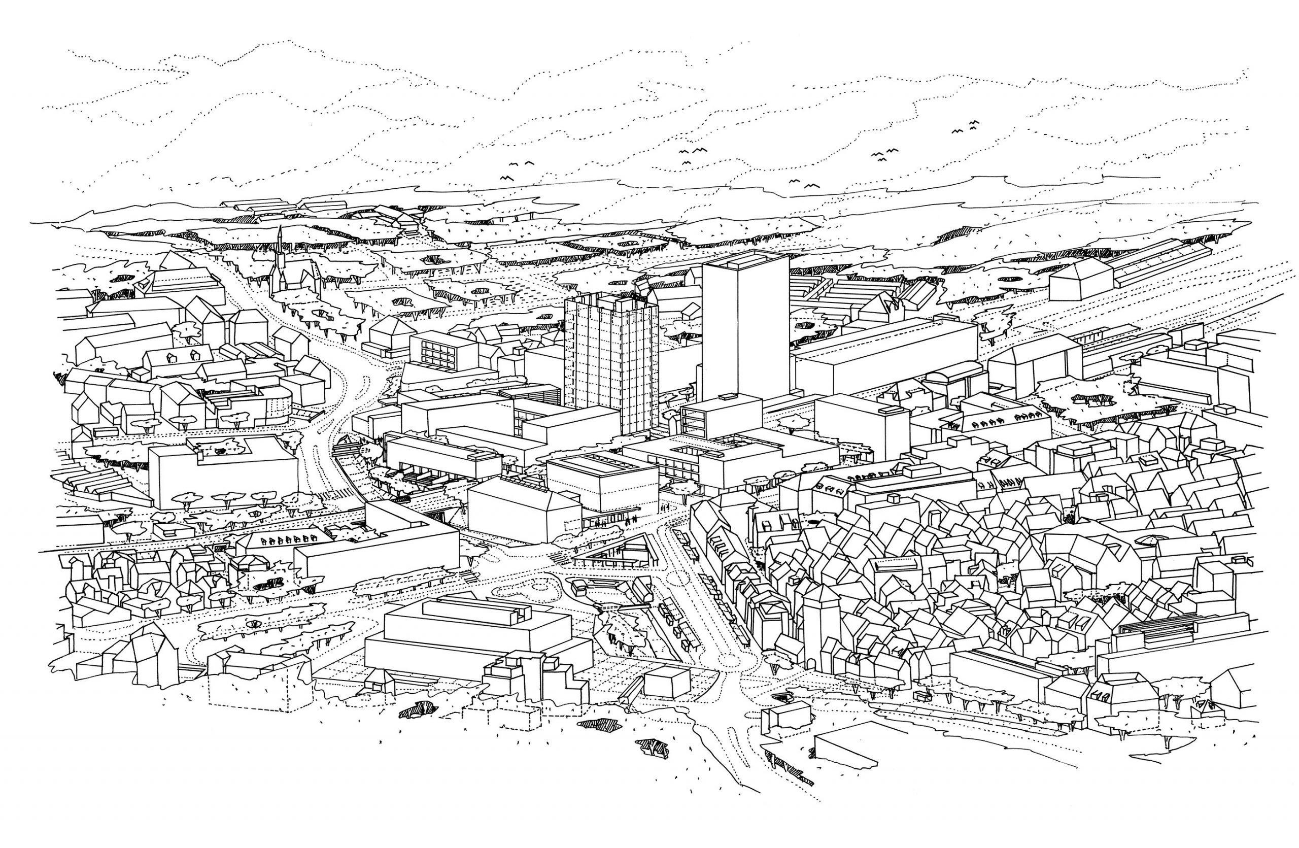 Ziel aller städtebaulichen Überlegungen muss sein ein lebendiges und vielfältiges Stück Stadt zu schaffen – mit allem wenn und aber. Mit dem Postareal soll ein pulsierendes Kulturquartier entstehen, das sich trotz seiner hohen infrastrukturellen Dichte als charaktervoller Mittelpunkt Reutlingens etablieren soll. Das Gleisfeld des unmittelbar angrenzenden Hauptbahnhofs teilt das Wettbewerbsgebiet in zwei Teile. Der bestehende Posttunnel wird daher zum verbindenden Moment.